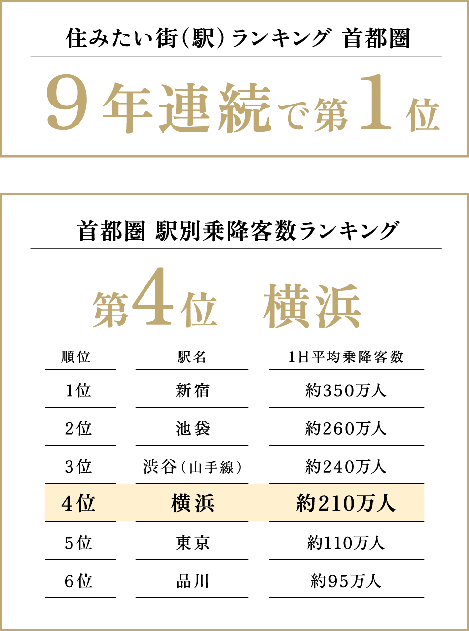 出典元:株式会社リクルート 「SUUMO住みたい街ランキング2026」 ※1日平均乗降人員は、JR東日本、東急電鉄、京浜急行電鉄、相模鉄道、横浜高速鉄道、横浜市交通局(地下鉄)が公表している2024年度(令和6年度)の駅別乗降人員(JRは乗車人員を2倍して算出)を合算したものです。一部推計値を含みます。(2025年12月現在の公表データに基づく)