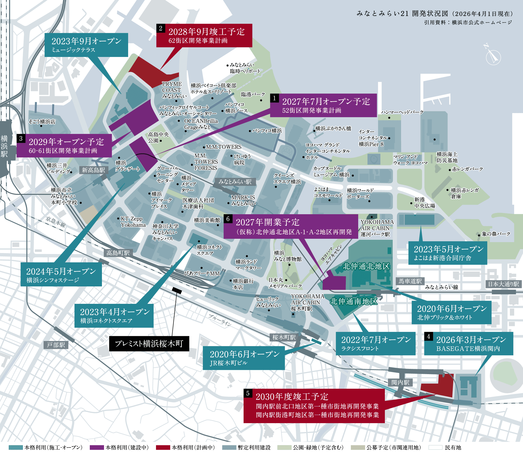 みなとみらいエリア・関内エリアでは大規模開発が継続中。