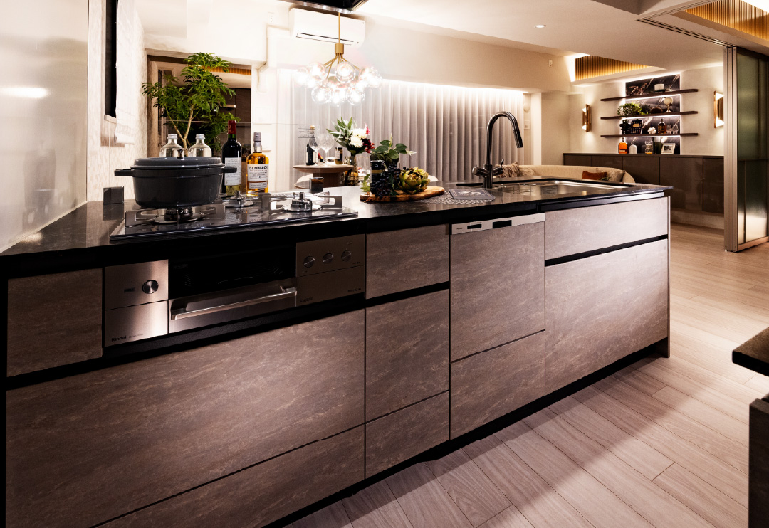- ※掲載の写真はモデルルーム(Aタイプ/9階)を撮影したもので、有償のマイスタイルデザイン・オプションセレクト・インテリアオプションが含まれております。家具・家電・調度品等は販売価格に含まれません。マイスタイルデザインや各種セレクトは受付期間内に限り利用申込をすることができます(期間は住戸により異なります)。詳しくは、係員にお尋ねください。
