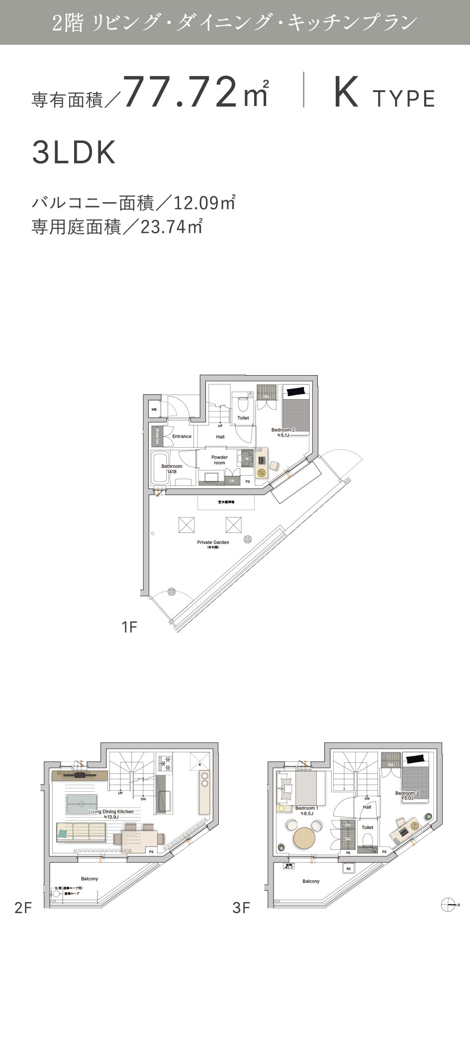 「プレミスト国立ゲートレジデンス」は、個性豊かな全16タイプの3階建てメゾネットプランをご用意。吹抜けやルーフバルコニー、セパレートキッチンなど、ライフスタイルや好みに応じてお部屋をお選びいただけます。