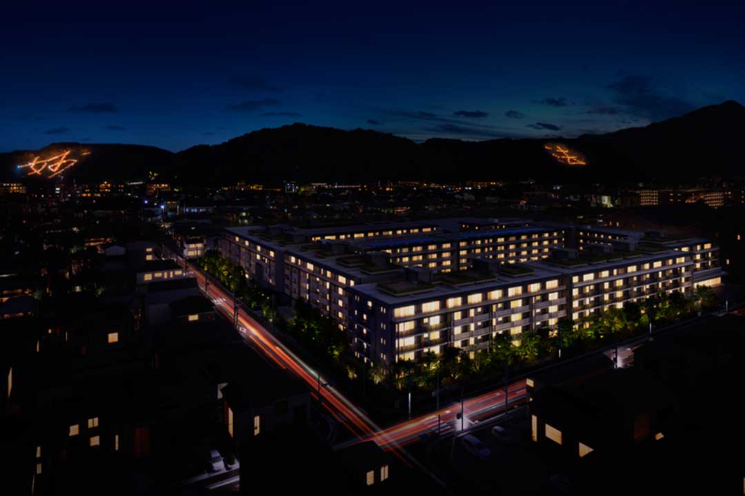 さらに夏の風物詩、五山の送り火「妙」(約950m)を大迫力で眺められるなど、季節の訪れに喜びが重なる、風情溢れる環境に位置しています。