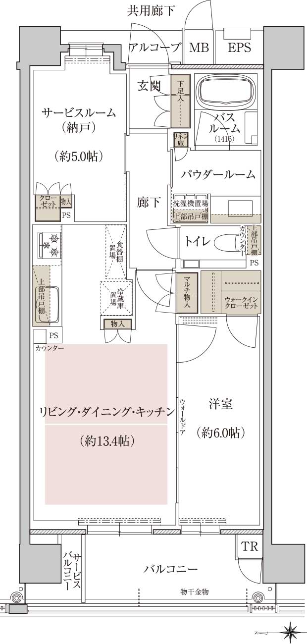 □サービスバルコニー面積:8.72㎡(約2.63坪)