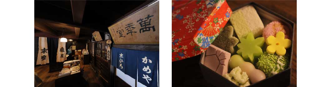 文化元年(1804年)創業以来、伝統の味と技を守り続けている。看板商品「京のよすが」は、季節ごとの干菓子や求肥を詰め合わせた逸品で京都の行事や四季を表現している。特別な贈り物としても自分へのご褒美としても最適。