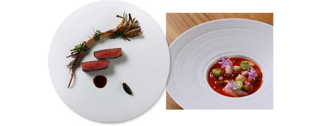 山と海の神々がもたらす旬の食材を自身の目で選び抜き、全国の生産者から取り寄せ仕立てるのはフレンチベースのジャンルレス料理。「心を真っ白に」という想いが込められた華やかなその姿に、六感が反応する。