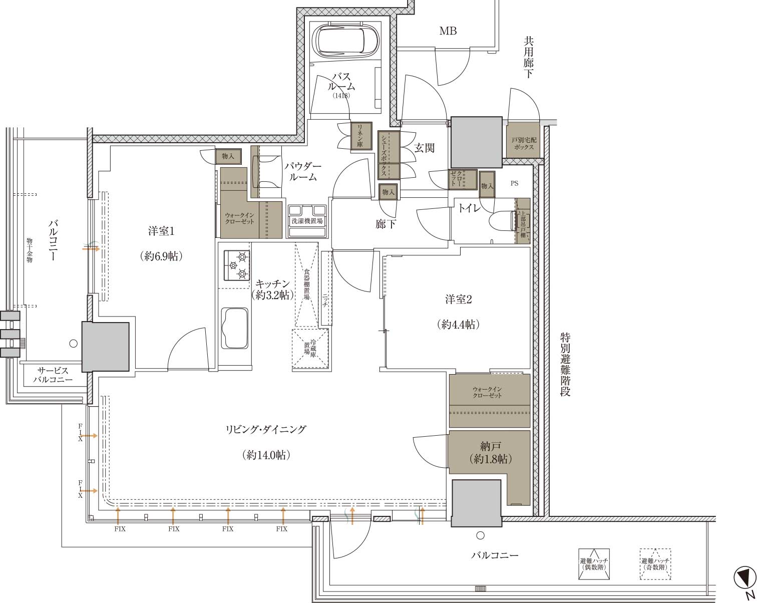 ■サービスバルコニー面積/1.07㎡(約0.32坪)