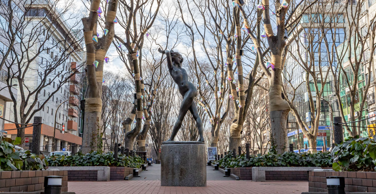 約700mにわたりケヤキ並木が続く街路。季節で表情を変える並木道は、散策路として親しまれています。冬には「SENDAI光のページェント」の舞台となり、仙台を代表する景観のひとつです。