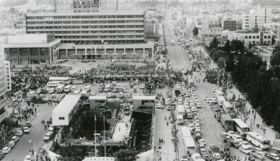 勾当台通りと仙台市役所界隈(1969年撮影・写真提供:せんだいメディアテーク)