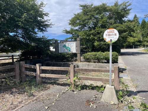 県道沿いの米町川のすぐ横が、『米町不動の滝』になっています。