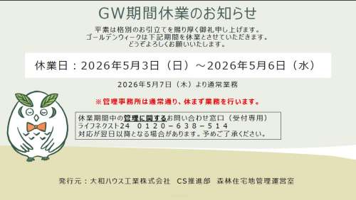 なお、休業期間中は即時の対応が難しい場合がございます。