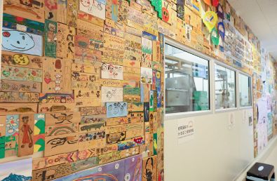 製造工程からもわかるように、じゃこ天は魚の栄養も豊富で、高タンパク、低カロリーな食品です。そのままでもおいしくいただけますが、代表の安岡一さんのおすすめは、軽く炙ってから食べるというもの。フライパンやトースターで炙ると、揚げたてのような香りと香ばしさがよみがえります。安岡蒲鉾店では、地元の豊かな食文化を子どもたちに伝えるために、製造工場においてHACCP認定を取得。工場内の見学通路には、2019年(平成31年・令和元年)から毎年開催されている「かまぼこ板美術展」に全国から応募された作品が並び、子どもから大人までの絵で、にぎやかに彩られていました。