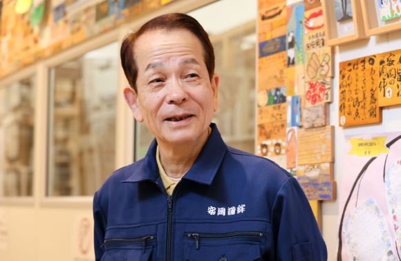 「いいものをつくらな、お客様がついてこんと、代々言われてきました」と語る安岡一さん。弟の省二さんとともに、伝統の製法を守る職人として『えひめ伝統工芸士(現:食品士)』に認定されている