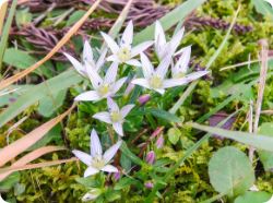 木々が少ない開けたエリアでは大山の伏流水が音を立て流れる水路横の緑地に点々とセンブリが花をつけていました。古くから民間薬として用いられてきたセンブリは白い花弁に紫色の筋が入る花が美しく切り花としても利用されています。近くのスギの幹に這い上がったツタウルシは黄色からオレンジ色に染まっていました。所々にあるコシアブラの透けたような淡いクリーム色の葉は林の中でひときわ目立つ紅葉です。花の少ない晩秋でも森は木々の紅葉や果実の多種多様な色であふれています。自然界の色の豊かさに驚かされました。