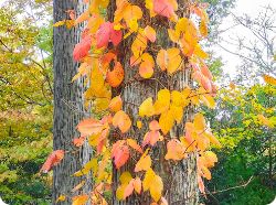 つるから気根を出して木などを這い上がる。葉は3枚がセットでつき、鮮やかに紅葉する。ウルシの仲間の中でも強い毒性を持つ