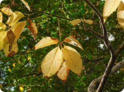 5枚の葉を掌状につけ、秋に黄色から透き通ったクリーム色に紅葉する。若芽は山菜として知られ「山菜の女王」とも呼ばれる
