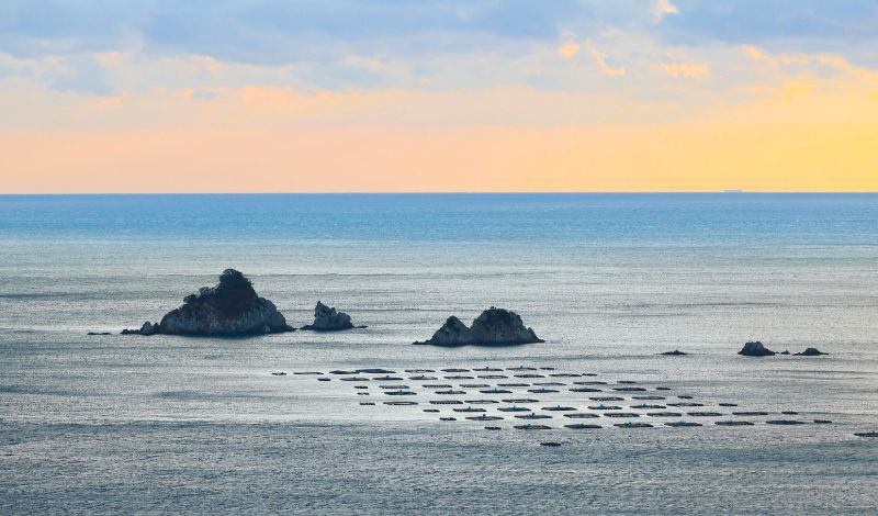 宇和海沿岸の海岸線を車で走ると、空まで続くような段畑が姿を表します。その開墾は江戸時代、当時の宇和島藩がイワシの漁場だった宇和海沿岸部に新しい漁村を拓くことを奨励。耕作できる平地がほぼない環境で、人々は山の急斜面に端正な石垣を幾層にも築き、大規模な段畑を開墾しました。その多くは、真珠やハマチなどの養殖産業の活気と反比例して耕作が放棄されていきましたが、宇和島市三浦半島の遊子(ゆす)地区、水荷浦(みずがうら)では現在も住民による保存と耕作が続いています。宇和海で営まれ続けた半農半漁の生活と、人々のたくましさを映すその景観は、次の世代に継承すべきものとして、2007年(平成19年)に文化庁の重要文化的景観の選定を受けました。
