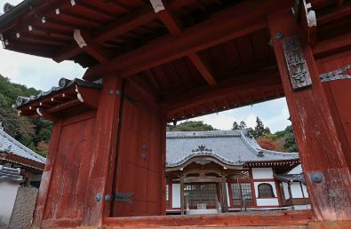 (写真右)光教禅寺山門。開明学校の横は清泰山 光教禅寺。開明学校は光教禅寺の境内だったところに建築されたという。ベンガラ色の山門は1758年(宝暦8年)築
