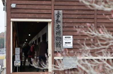 旧宇和町小学校校舎を活用した宇和米博物館。109mも延びる木造廊下では、ぞうきんがけのタイムを競うイベントが話題