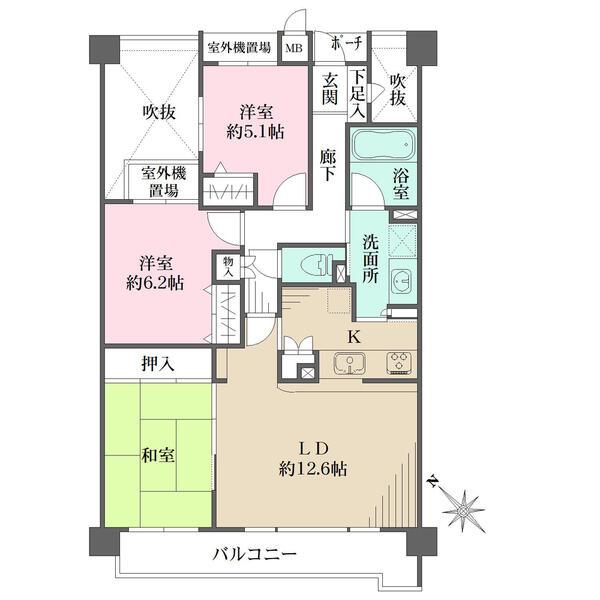- 野村不動産分譲の低層設計マンション。2階南西向き住戸。