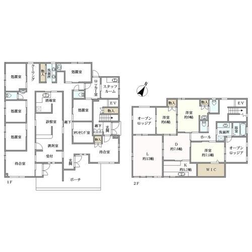 - 間取 1階:診療所 2階:3LDK+WIC WIC=ウォークインクローゼット 外壁後退距離1.5m 文教地区 10m高度地区 第1種風致地区 緑化地域 宅地造成及び特定盛土等規制法