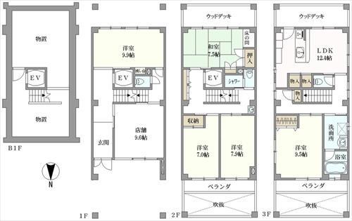 - 間取 5LDK+店舗 建物延面積に地下室54.76平米含 15m第3種高度地区 準防火地域 山並み背景型建造物修景地区 近景デザイン保全区域(24-1)事前協議区域(24-1) 遠景デザイン保全区域(11)(49)