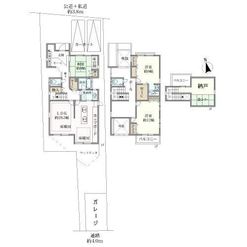 - セットバック要 間取 3SLDK+WIC(S=納戸、WIC=ウォークインクローゼット) 家具、調度品等は引渡しまでに撤去予定であり、販売価格に含みません。 景観法、盛土規制法