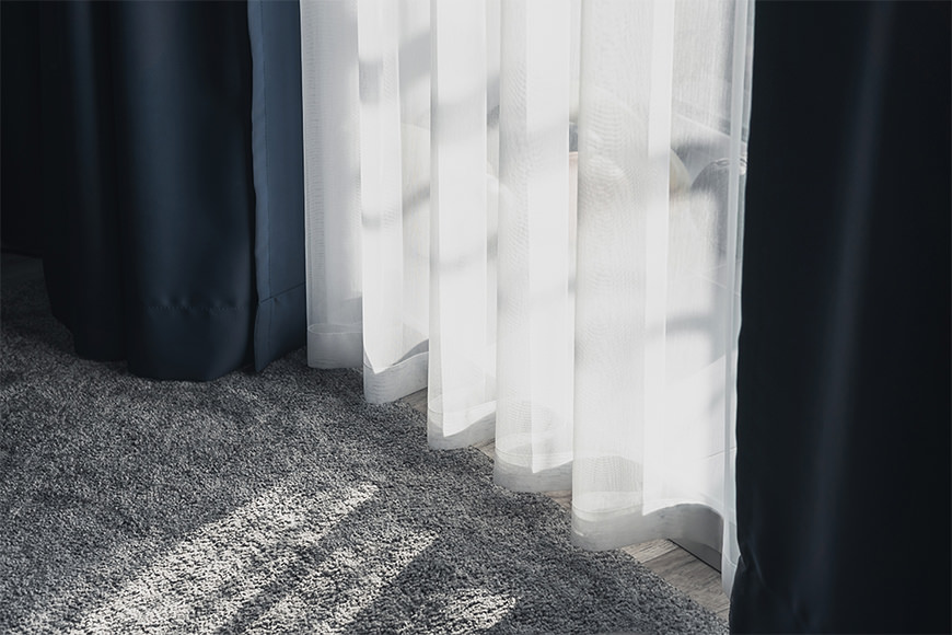 厚手のカーペットや遮音カーテンで、重低音が外に漏れることを軽減。