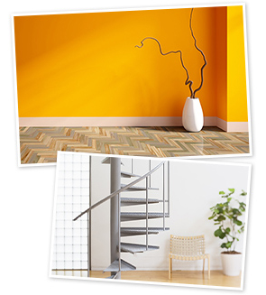 内装は耐久性や価格が優先ね