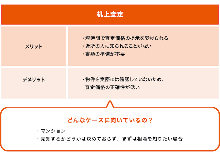 不動産査定には、「机上査定(簡易査定)」と「訪問査定」の2種類があります。
