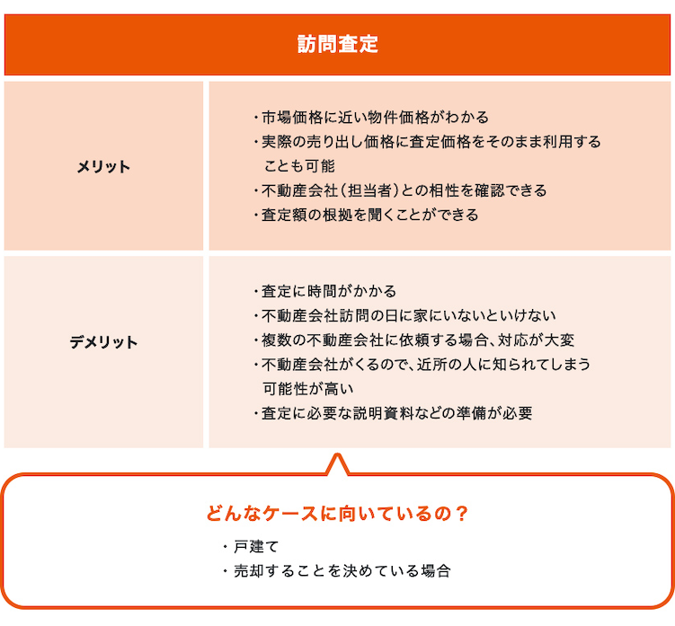 こういったことを踏まえ、戸建ての場合は早い段階で訪問査定を行うほうが効率的です。マンションの場合も売却を急ぐ場合には訪問査定を考えましょう。