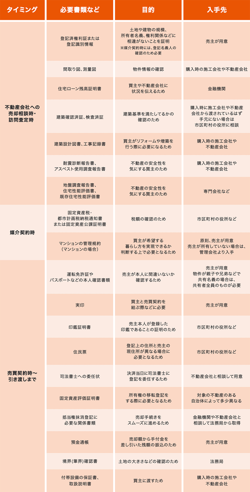 ほかにも不動産会社への売却相談時や訪問査定時、媒介契約時などにも、さまざまな書類が必要になる場合があります。