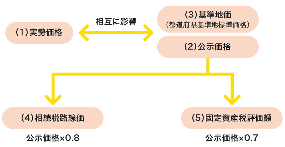 土地の価格を決定する「基準となる価格」には、複数のものがあります。ここでは特に重要な5つの基準をご案内します。