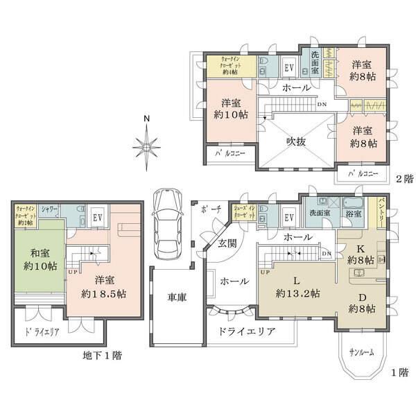- 2×4工法を用いた、北米型輸入住宅仕様の5LDK住戸準防火地域、第一種高度地区