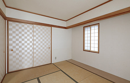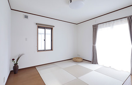 畳をフローリングに変えた上で置き畳を配置しており、来客時には布団を敷いて客間として使用することも可能です。