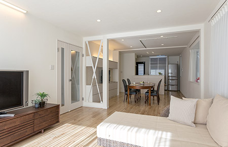 子育てのしやすさや家事動線に配慮した、明るく開放感あるLDKに