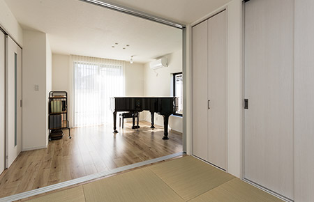 1階の和室・洋室の2室がお母さまの居室。洋室には、ピアノ教室をされていたお母さまのグランドピアノを設置