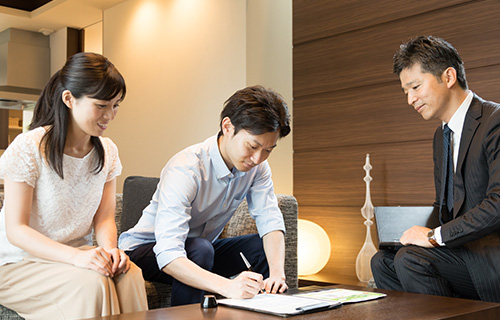 購入物件の重要事項説明を受けた後、契約書を取り交わします。手付金、印紙税などをご用意ください。