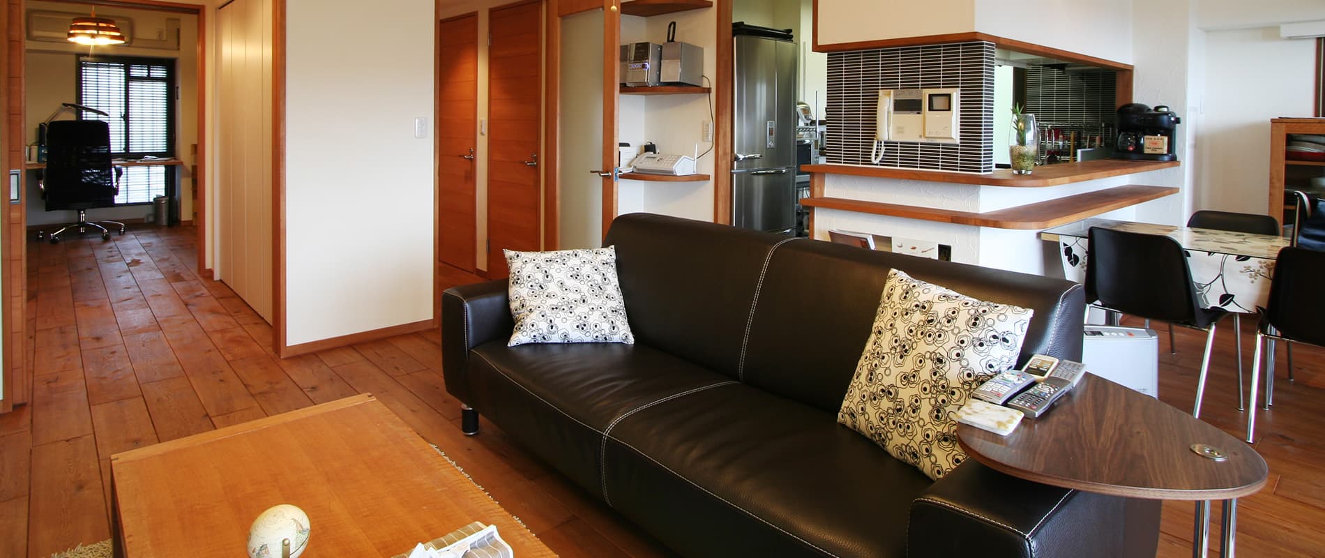 また、使わない和室を無くしてリビングを広げるとともに洋室を廊下収納でつなぎ仕切れるようにしたことで、開放感と機能性の両方を手に入れることができました。