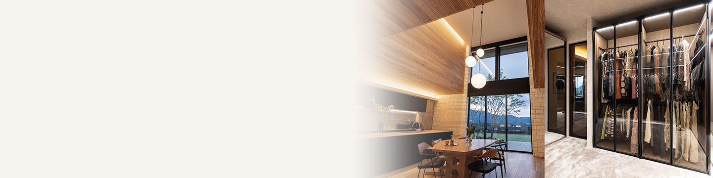 Kさまが大切にされたのは、モダンで洗練されたデザインと、ほっとする安心感。唯一無二の意匠性、木やタイルなど自然素材の質感にこだわり、ご家族が心地よく過ごせる住まいが完成しました。