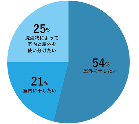 次に多かったのが「洗濯物によって室内と屋外を使い分けたい」(25%)というハイブリッド型の意見です。「日常的には外干し。夜や雨の日、花粉の季節は部屋干し」「ラグやシーツ、厚手のトレーナーなどは外干し。それ以外は乾燥機」「日焼けが気になるデリケートな素材や下着は部屋干し。それ以外は外干し」というように、衣類の種類や生活状況、天候条件などに応じて柔軟に対応したいと考える方が全体の4分の1を占めました。