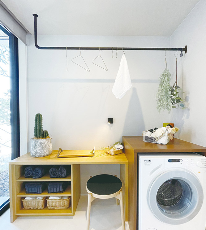 - 7人家族で洗濯は1日3回。ランドリールームがあれば天気に左右されず干せて、片付けもスムーズ。洗濯の時短で自分の時間を持ちたい