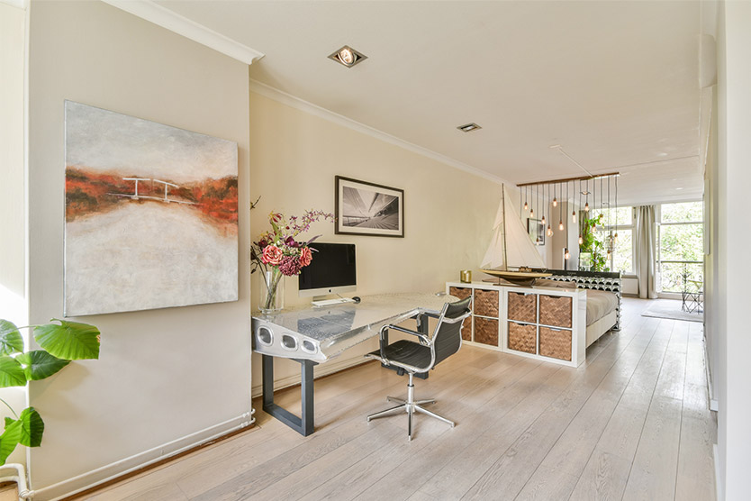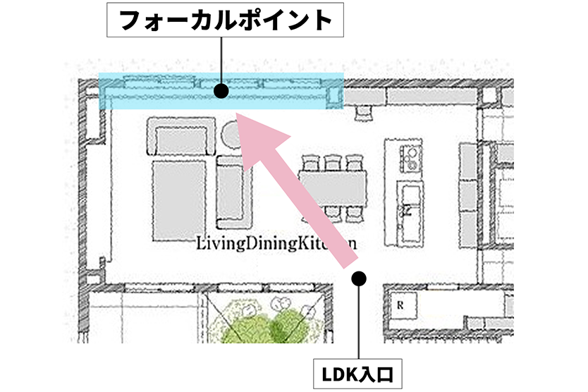 また、絵を飾ることで、部屋の中で自然と視線が集まるフォーカルポイントを演出でき、おしゃれな印象もアップします。絵を飾って生み出すフォーカルポイントは、入り口の対角線上の壁や大きなスペースがある場所など、もともと視線が集中しやすいところに作ると効果的です。
