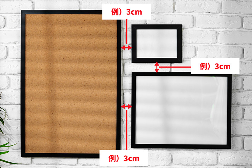 額縁と額縁の間を等間隔に揃えて飾ったイメージ