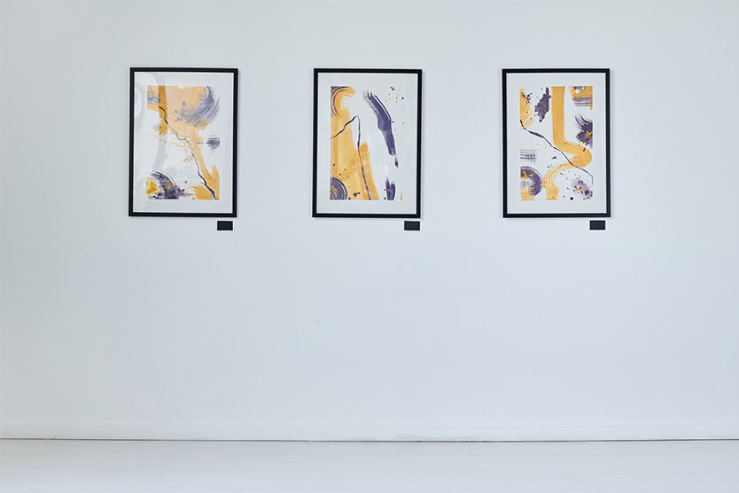 広いスペースなどに複数の絵を並べるときは、一定のルールで並べた方が、統一感が生まれやすくなります。