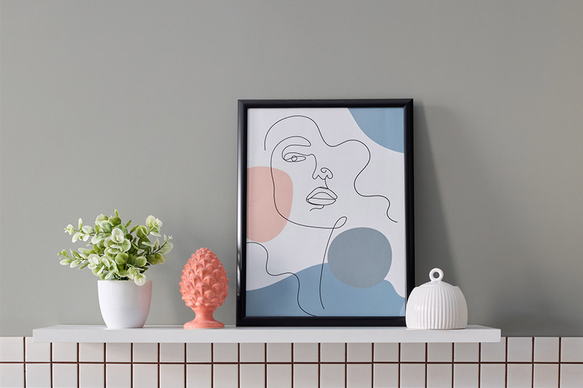 玄関、リビング、寝室、廊下、階段など、絵は家のいろいろな場所に飾ることができます。初めて絵を飾るなら、白を基調にしたシンプルな部屋には柔らかな色味の絵、和モダンな部屋には絵のモチーフに和を感じさせるものにするなど、部屋のムードにマッチするものがいいでしょう。お気に入りの絵を見つけてから家のどこに置こうかと考えても、置きたい場所を決めてから絵を探しても、どちらでも構いません。