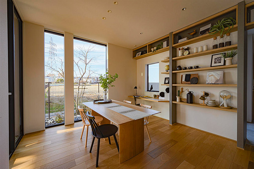 さらに、柱や壁の少ない大空間が実現可能で、リビングにお気に入りの絵を飾ったり、広い壁に壁面収納を設けて絵や小物を配置したりと、アートな空間を存分に楽しむことができます。