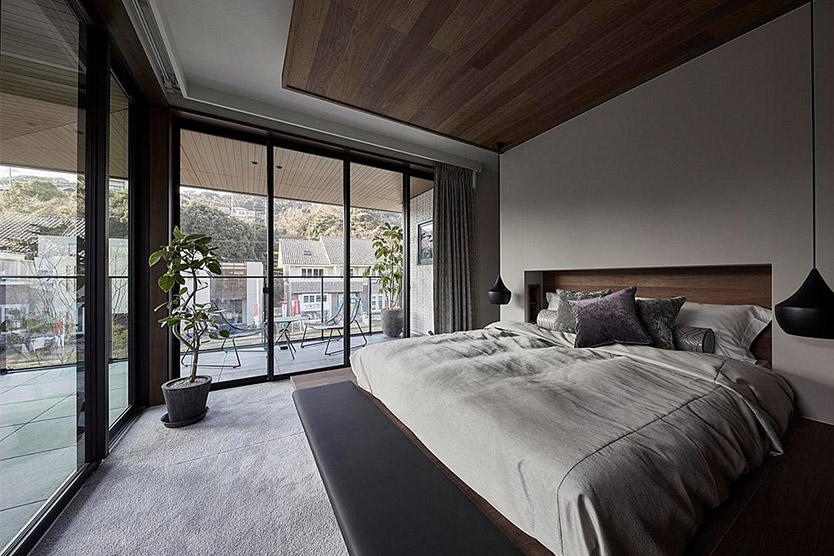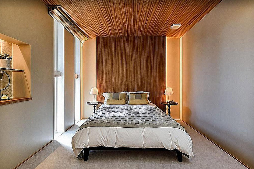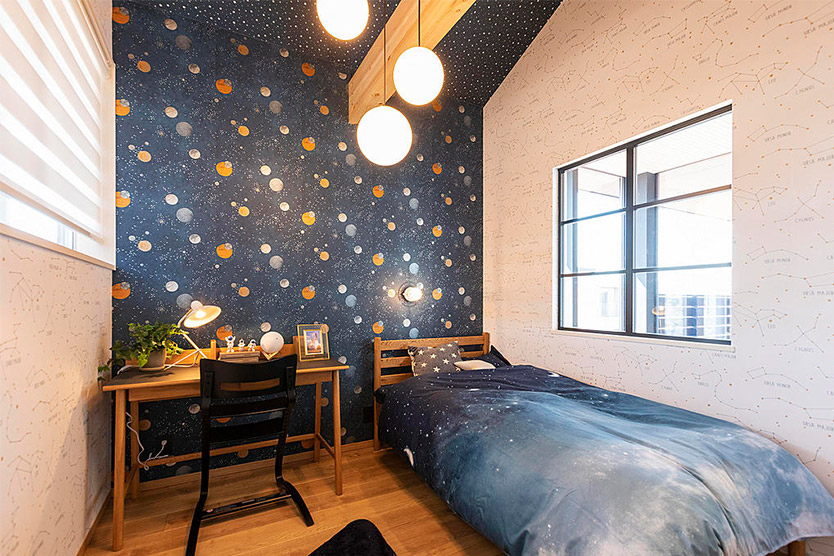寝室を勾配天井にして天窓を設ければ、月や星空を眺めながら眠りに就くこともできるかもしれません。また、直射日光が入りにくい高窓なら、穏やかな光に包まれて目覚められそうです。