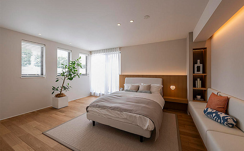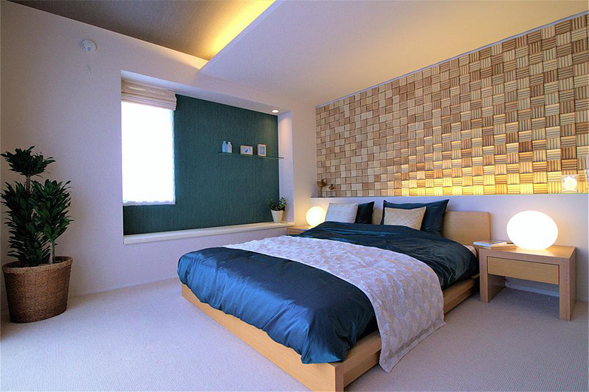 寝室に自分がリラックスできる環境をつくることが大切です。間接照明のやさしい光、自然素材のナチュラルなテイストやカラーなど、居心地の良いインテリアを実現しましょう。