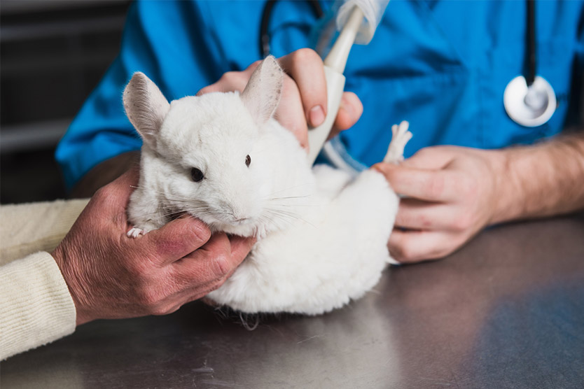 動物は表情の変化に乏しいので、体調が悪くても分かりにくいことがあります。健康管理のため、年に一度は動物病院で健康診断を受けると良いでしょう。チンチラは犬や猫のように家畜化されたペットでなく、エキゾチックアニマルとして扱われ飼育の歴史も浅いため、積極的に受け入れる病院は多くないかもしれません。体調不良や病気のときにスムーズに受診できるよう、家から通えるところで、チンチラにも対応してくれる動物病院を見つけておけると安心です。