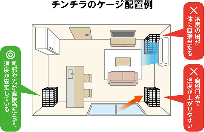 ペットショップやブリーダーからチンチラを迎える前に、知っておきたい飼育の基本的なポイントを紹介します。特に注意したいのがチンチラに適した温度・湿度の環境を、1年を通じて保ち続けることです。