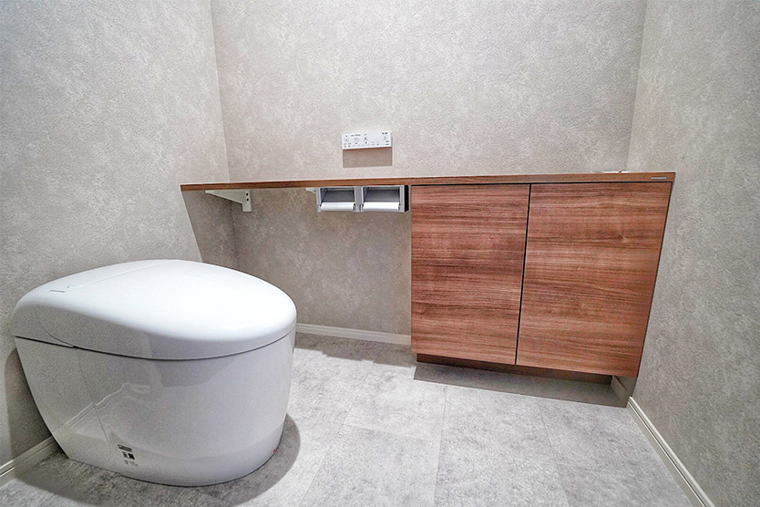 最近では、防臭効果があるタイプや水拭きができる内装材などもあり、汚れが気になりにくい素材を選べば、ベージュやアイボリー、薄いグレーなどの定番色に限らず、色の選択肢も広がって、トイレをより快適に楽しむこともできます。